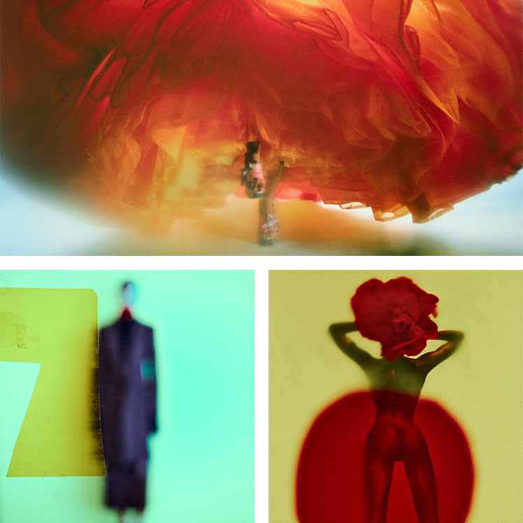 He studied fashion design under Vivienne Westwood and photography under F. C. Gundlach at Berlin University of the Arts. It was there that he met Peggy – now his wife – who also studied fashion design and trained under Vivienne Westwood. The two continue to work closely together: Peggy regularly styles his photographs and remains a steady part of his creative world. His visual language – opulent yet precise – shapes international magazines, campaigns and exhibitions. His current exhibition "Pictures", previously shown at the Kunstmuseum Potsdam, spans works ranging from powerful, theatrical compositions to quiet black-andwhite portraits – a tension between glamour and origin, between stage and memory. From January to March 2026, "Pictures" will also be presented at the House of Photography in Stockholm.