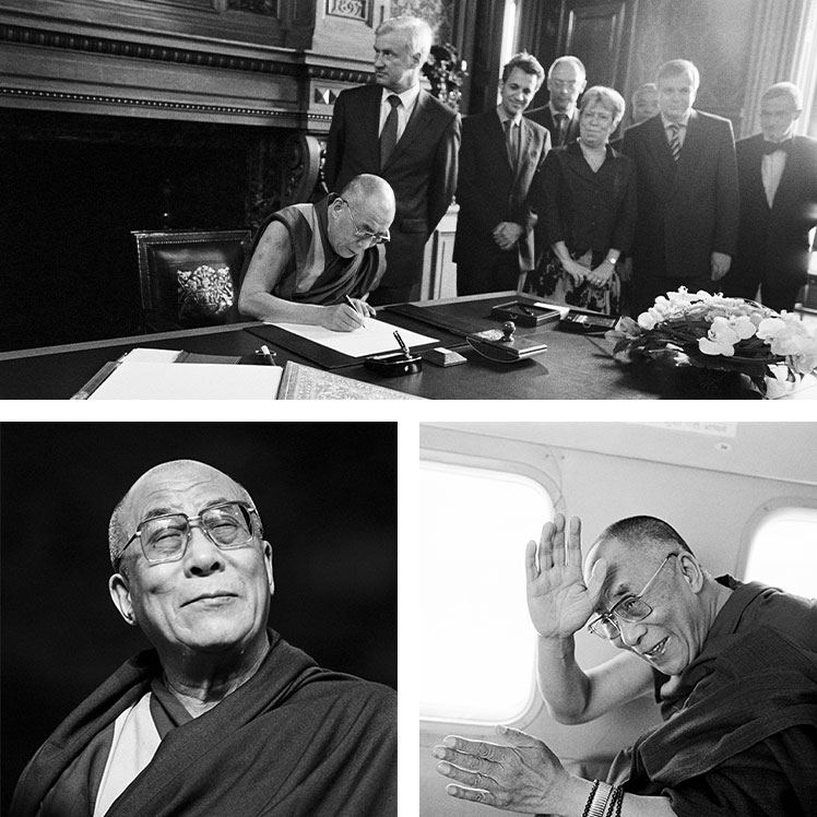 That precision has shaped his entire career. When Bauer first encountered the reality of Tibetan exile in the early 1990s, a relationship began that continues to this day. He has since followed not only the political fate of Tibet, but also the life of the 14th Dalai Lama. For over thirty years, he has documented the spiritual leader’s travels, public appearances, and conversations – but also private, quiet moments far from the public eye.